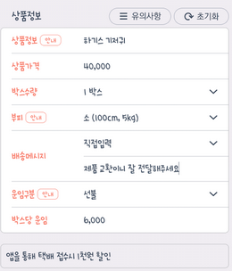 저는 상품정보는 기저귀로 입력하고, 상품가격은 기저귀 두 개 가격인 40,000원, 박스수량은 1박스로 입력