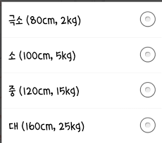(주의 : 크기와 무게 중, 큰 값을 기준으로 합니다)