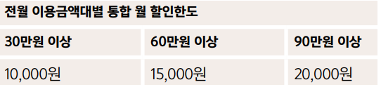- 월 최대 50만원까지 할인 (한도가 무척 넉넉함)