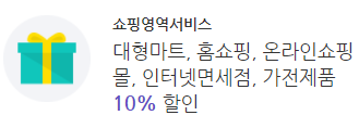 - 구분 : 쇼핑 할인, 자동납부 할인, 생활 할인