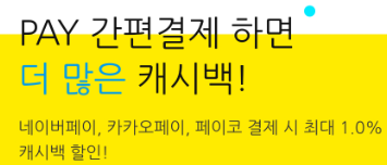 즉, 건당 2만원 이상 간편결제 시 0.5% 할인, 건당 5만원 이상 간편결제 시 1% 할인