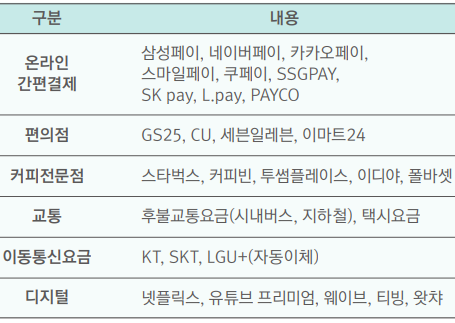2. 편의점, 택시요금 : 온라인 결제 제외