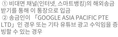 본문 내용을 보시면, 송금처가 구글 아시아 퍼시픽으로 되면 우대 혜택을 받을 수 있어서, 유튜브나 블로그 모두 가능합니다.