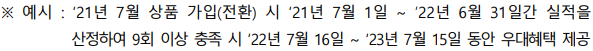 ※ 이 때, '직전 1년'은 상품 가입 (전환 가입) 월부터 다음해 상품 가입월 전월 말일까지의 1년을 의미