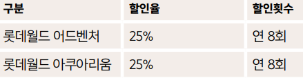 - 구분 : 롯데월드 관련 할인, 롯데월드 외 할인