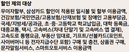 1. 삼성카드의 다른 할인 (이벤트 등)과 중복 적용 안 됨