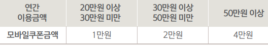 투썸에서 연간 결제금액이 20만원 이상이면, 1만원권, 30만원 이상이면 2만원권, 50만원 이상이면 모바일쿠폰 4만원권 지급됩니다 (※ 쿠폰은 다음해 2월 말 이내, 투썸 회원정보에 등록된 휴대폰 번호로 발송)