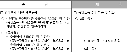 (4) 월세 세액공제 : 소득기준 조정