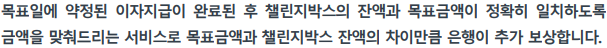 - 목표일에 챌린지박스가 자동 해지되어, 원금+이자 전액이 연결계좌로 입금 됨