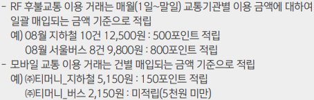 - 모바일 교통 선불충전 이용건은 적립 제외 -