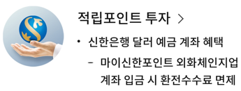 신한은행의 대표적인 외화계좌인 '외화 체인지업 계좌' (수시 입출금계자)로 매달 적립된 포인트가 환전을 거쳐, 자동투자되게 연결할 수 있습니다.