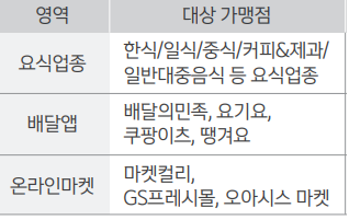 - 구성 : 요식업종, 배달앱, 신선식품 온라인몰