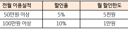 - 조건 : 전월 실적 50만원 이상 시 혜택