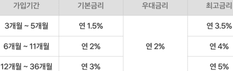 ※ 가입기간이 12개월 이상으로 가입할 경우, 기본금리 연 3% (세전)