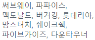 버거킹, 써브웨이, 쉐이크쉑 등