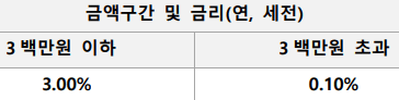 ※ 잔액 300만원을 초과한 금액에 대해서는 연 0.1%만 적용