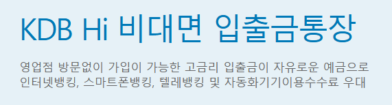 산업은행 (KDB)의 'KDB HI 비대면 입출금통장'은 온라인 가입 전용인 자유 입출금통장입니다.